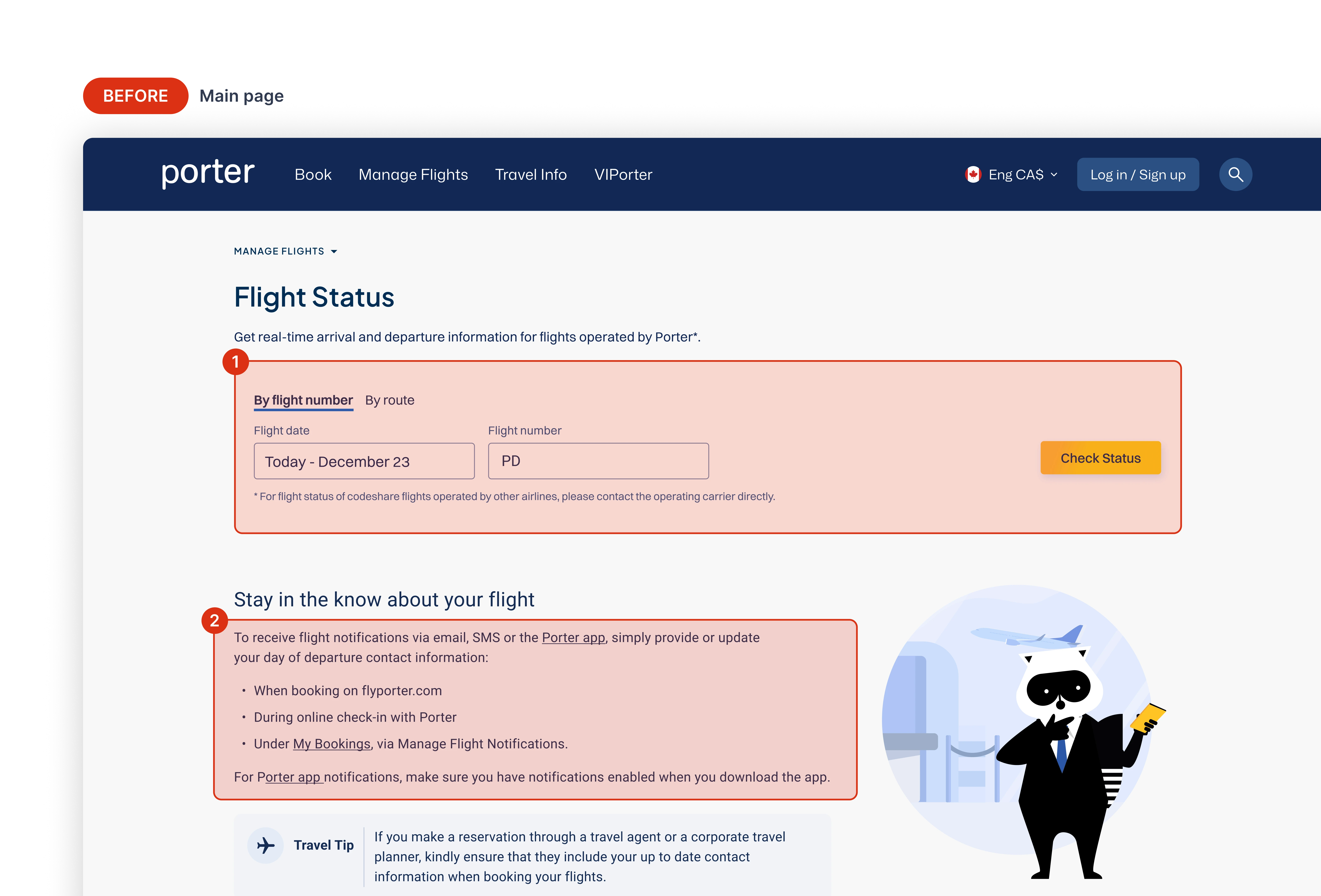 We didn't have quantifiable data on the percentage of support calls that are about flight status. Measuring the rates before and after the flow is launched would be an interesting way to measure the financial success of the flow's redesign, as the business cost of these types of calls are easily-preventable.